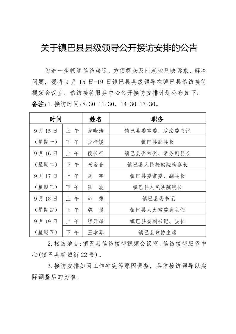关于hth手机app下载县级领导公开接访安排的公告