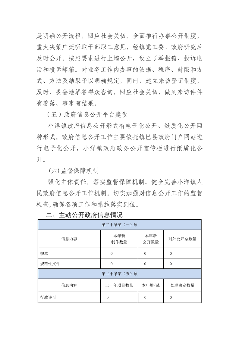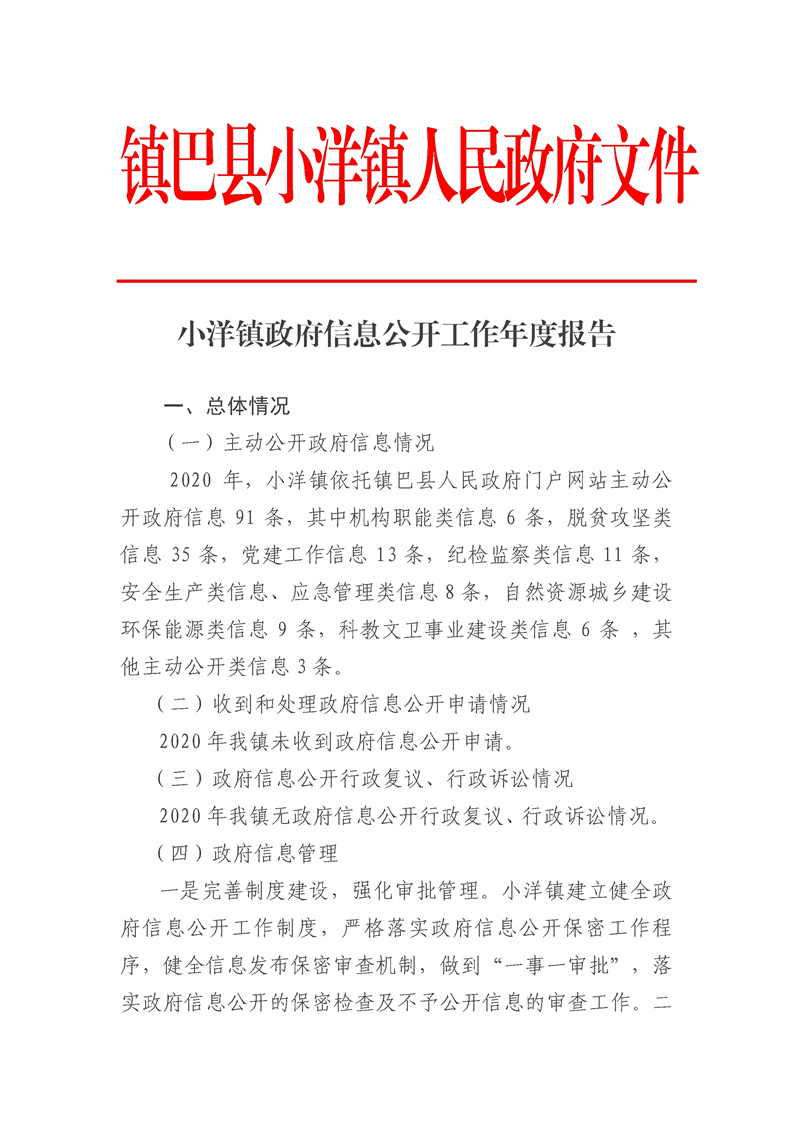 小洋镇2020年度信息公开工作年度报告