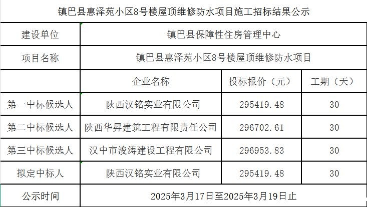 hth手机app下载惠泽苑小区8号楼屋顶维修防水项目施工招标结果公示
